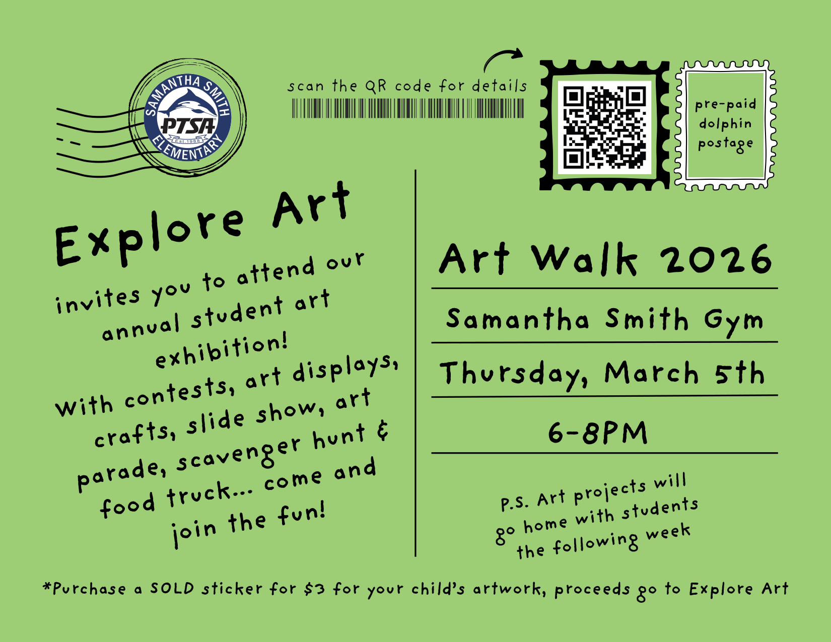 Join us on Thursday, March 5th from 6-8 PM in the Samantha Smith Gym for our annual Art Walk celebration!