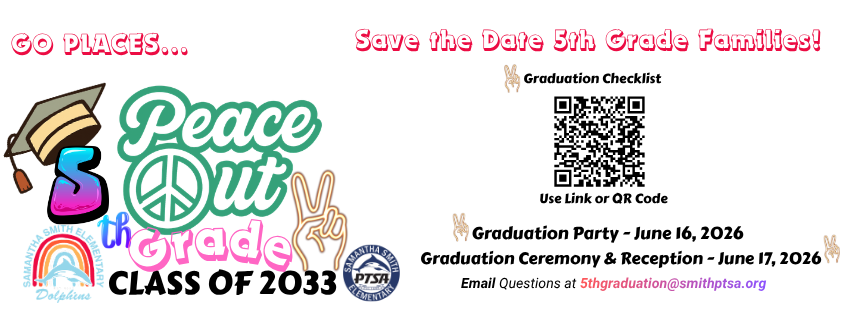 Questions can be sent to your room parents or emailed to the 5th grade Committee at 5thgraduation@smithptsa.org.